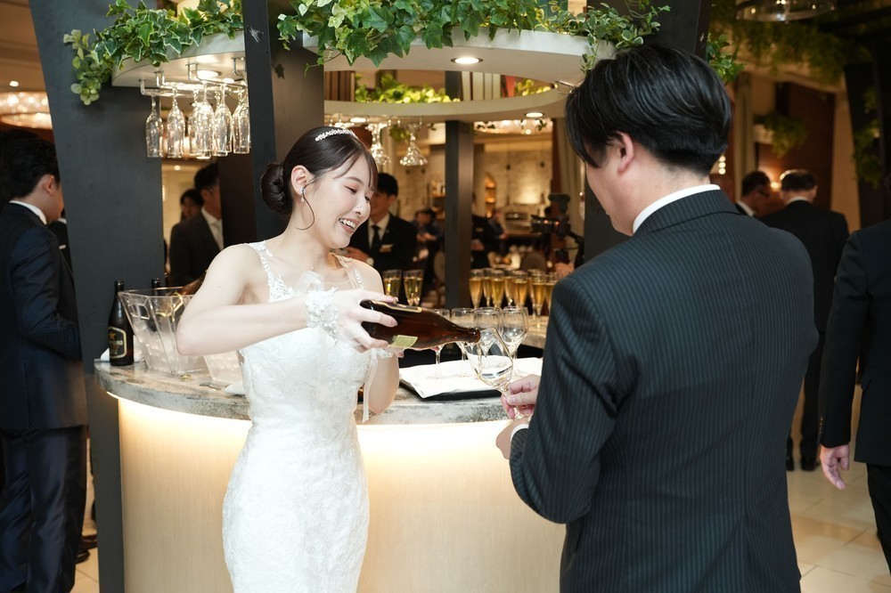 アトリウムバーで色々なお酒の飲み比べもでき、自分たちからゲストにお酒をふるまう事もできたので、皆に喜んでもらえ嬉しかったです。距離も遠くなく、近くでアットホームな雰囲気の中お話しができたことが嬉しかったです。